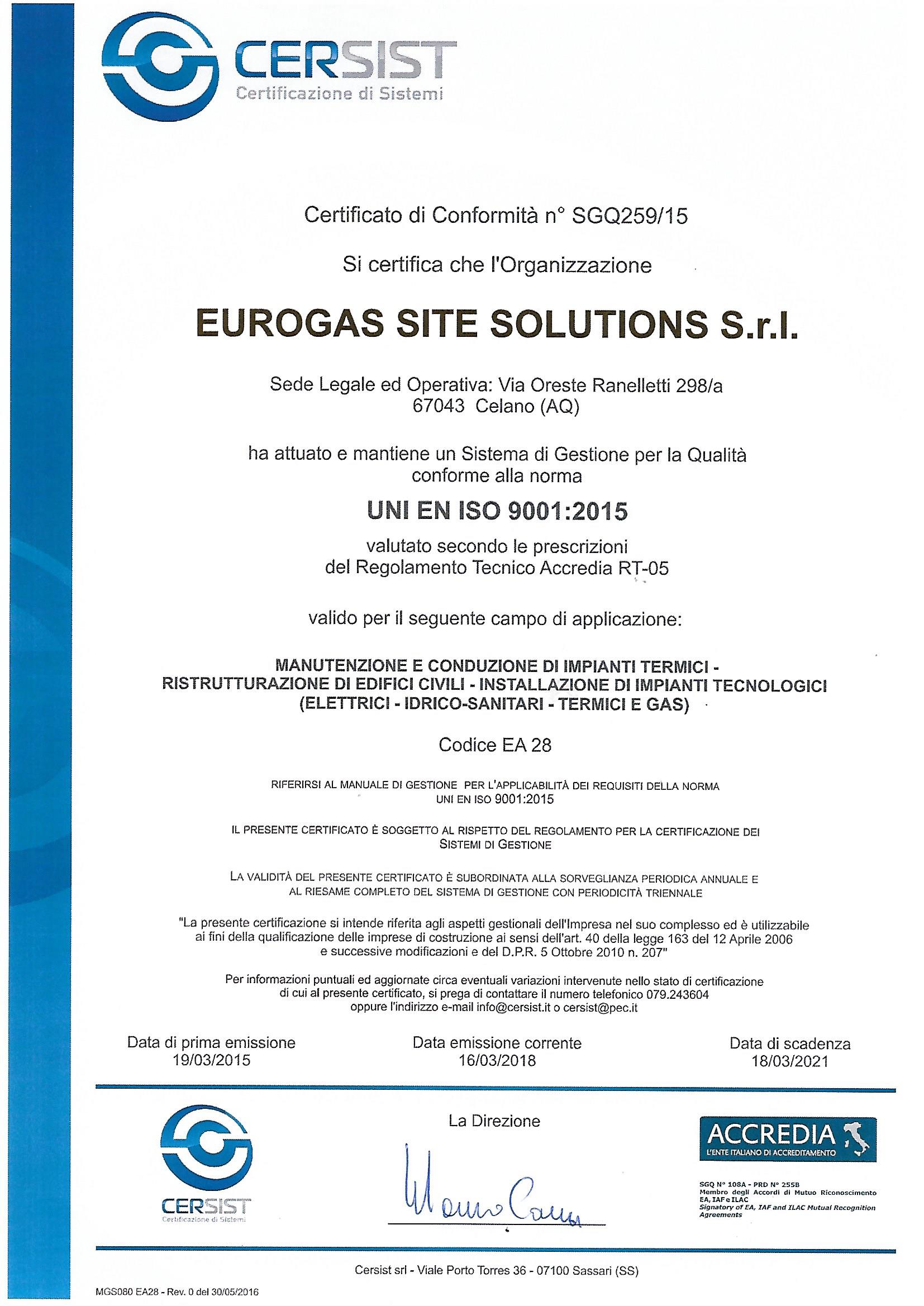 Servizio di conduzione, manutenzione ed interventi a guasto per gli impianti di climatizzazione invernale ed estiva di tutti gli edifici di pertinenza della Regione nella provincia dell’Aquila e Teramo, compreso Ufficio Rappresentanza Regione Abruzzo situato in Roma. ANNO 2015/2016 – 2017/2018