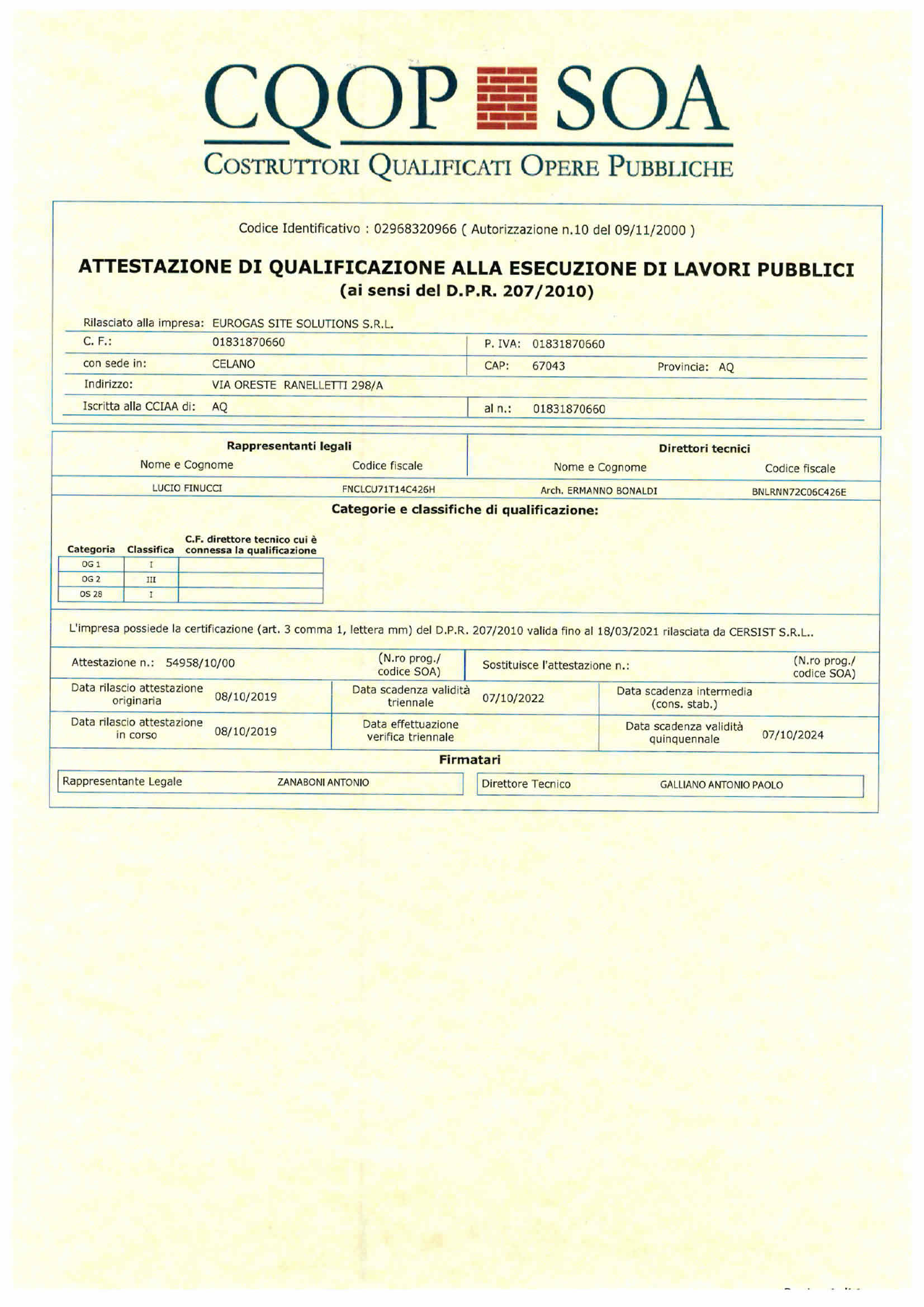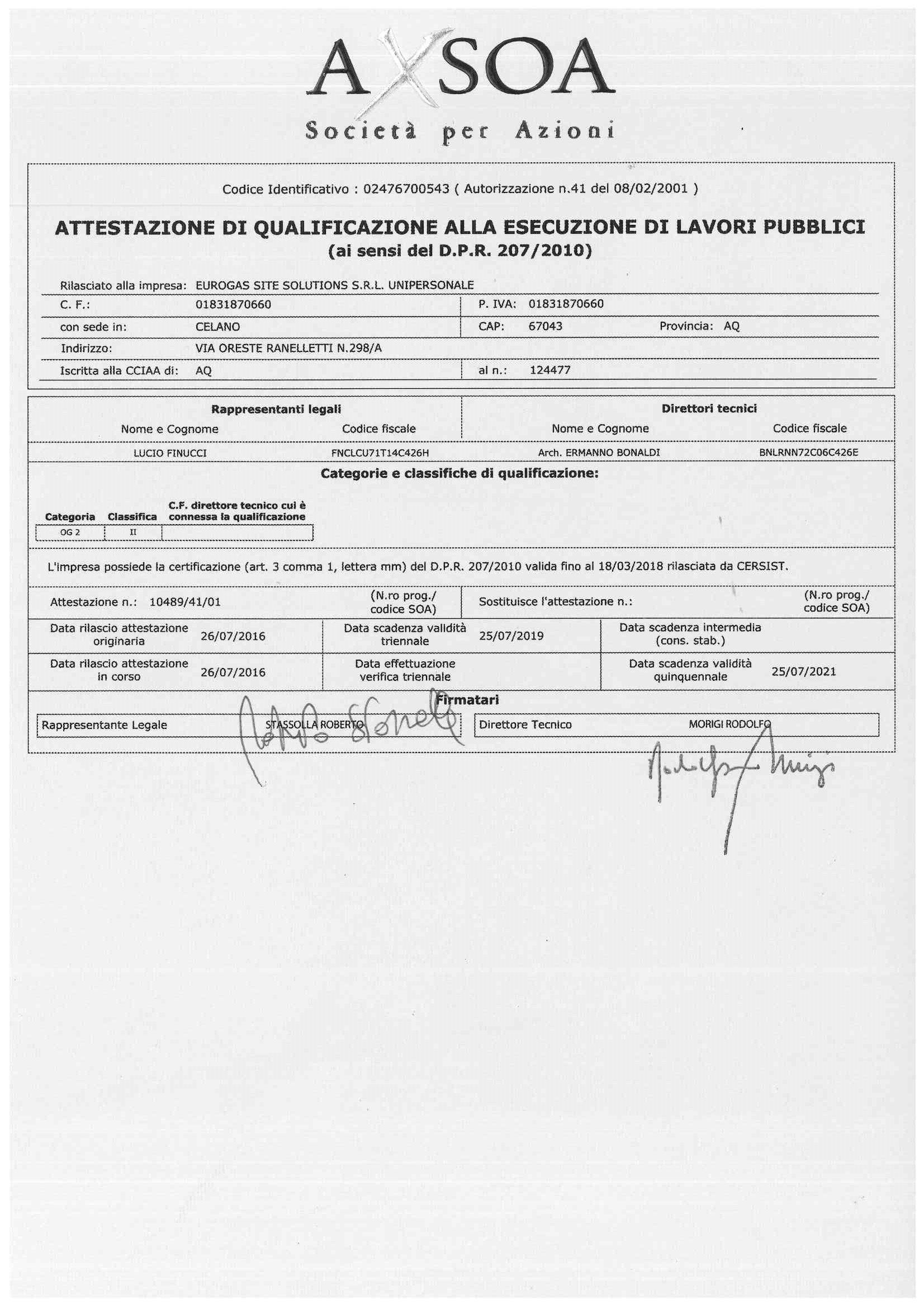 Opere di demolizione, opere di restauro, realizzazione di impianto termico, idraulico e gas; opere di tinteggiatura; CAT. OG11, OG2; ANNO 2016/2017